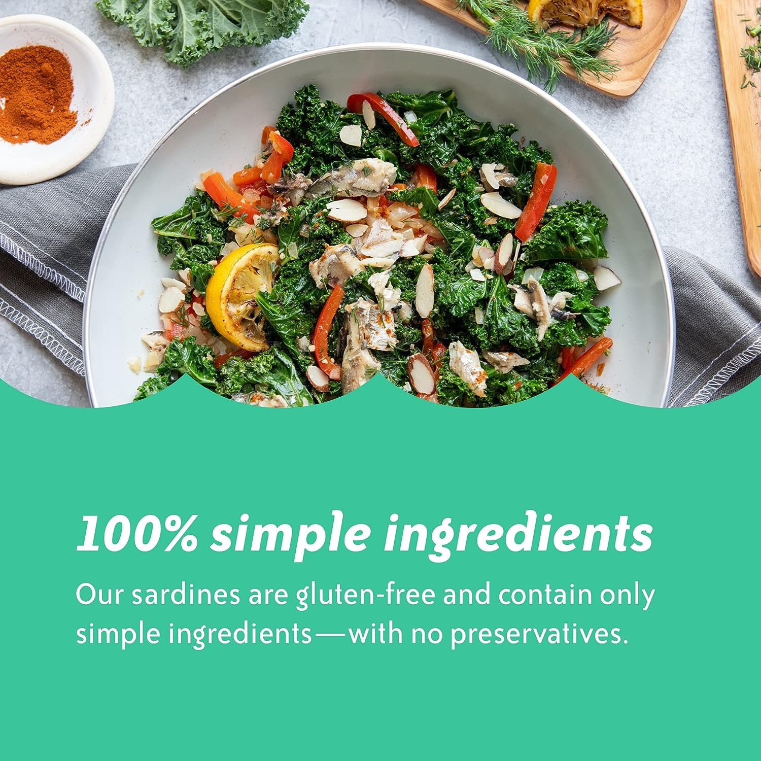 - 100% SIMPLE INGREDIENTS: Our sardines in olive oil are gluten-free and contain only simple ingredients—with no preservatives.