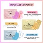 - Independent Packaging: This product contains 10 pairs of rose eye mask, 10 pairs of hyaluronic acid eye mask, and 10 pairs of 24K gold eye mask. 24K Gold Eye Mask helps rejuvenate the eye-contour skin, such as fine line and puffiness. Hyaluronic Acid Eye Mask helps hydrate skin and fade wrinkle. Rose Eye Mask helps promote blood circulation to remove dark circle.Each pair of eye mask is independent packaging to ensure that it will not be contaminated.